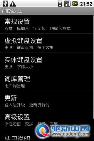 百度输入法 Android上的拼音输入法非常多,这点iPhone可比不了,常用的输入法有:百度、谷歌、搜狗、QQ、触宝、91等多种中文拼音输入法,个人感觉百度手机输入法要好用一点。 ![]()