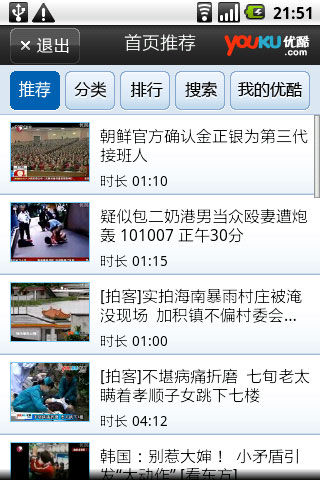 优酷 优酷的Android手机版,既然不让中国用户访问YouTube,那就只好访问YouKu了。 ![]()