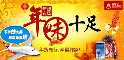 本次360年货专场的商品十分全面。360购物平台携手百余家知名电商,覆盖千万商品,为用户提供了丰富的年货选择。新年服饰、鞋包、食品粮油、节日礼品、家居家纺、数码家电等各类过年所需商品一应俱全。与此同时,360年货价格实惠给力。360购物平台对数码家电类产品,给出了5折起超值折扣;针对其他类商品,更推出全场5折封顶的让利,让用户尽享方便和实惠,红红火火过大年。 据悉,网购年货近年正越来越受到广大网民的喜爱。一方面,临近年关很多网民依旧工作繁忙,很难抽出时间线下采购年货;另一方面,网购年货方便快捷,价格实惠,还能够快递到家。 蛇年网购年货,用户的热情较往年更加高涨。不过专家提示,安全可靠依旧是左右网购年货普及程度的关键因素。据相关调查显示,很多对网购年货心存顾虑的网民,超过五成是因为年货安全。的确,过年置办年货图的就是喜庆和舒心,如果网购年货质量不过关,则会增添不少麻烦。 对此,360年货专场特色之一便是安全可靠。本次360购物平台所办的年货专场,给广大用户提供了一个放心安全的购物平台。这得益于360购物平台的实力背景和基础。据悉,360购物平台作为360公司旗下电商开放平台的重要组成部分,如今已发展为中国重量级的网购平台。目前年货购物网站不可胜数,但是要找一家安全可靠的网购年货平台却非常重要。