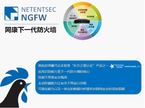 网康下一代防火墙为业内唯一通过东方之星认证的防火墙产品 关于网康: 北京网康科技有限公司成立于2004年,从创立之日起便深耕于网络应用层技术和产品的研发,是国内乃至世界领先的网络应用层技术领导厂商。产品线覆盖上网行为管理、下一代防火墙、智能流量管理、应用层VPN、代理服务器,所有产品均处于市场领导地位! 网康科技以“人、内容、应用”作为核心技术理念,对用户的网络进行智能化管理、优化和安全保障。网康科技致力于帮助用户建设全新的下一代网络,保障客户的核心业务在网络上便捷、高效、安全地运转。 网址:www.netentsec.com 普及风暴专题:http://net.zol.com.cn/topic/3679970.html 关于赛可达实验室: 作为西海岸实验室的中国测评认证机构,赛可达实验室充分利用西岸实验室世界领先的测评技术实力和数年丰富的国际测评经验,为网络信息安全厂商提供“公正、中立、科学、严谨”的权威第三方测评认证服务。测试严格采用西海岸实验室的测试标准体系和技术,强调产品在真实环境中特别是在中国实际互联网环境下的性能表现。通过认证的产品,都将获得著名的Checkmark“东方之星”证书,以证明其具有国际水平的卓越性能表现。
