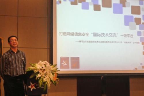 图 西海岸实验室副总裁宋继忠主持会议 “赛可达实验室国际技术交流顾问委员会” 的成立,是为了适应不断发展的网络信息安全保障需求,打造世界级网络信息安全产品,使国内的产品品牌迅速扬名国内国际市场。网康将通过在应用层多年的技术积累,将鼎力支持技术委员会的各项计划,积极推进并引领下一代防火墙产品的发展,为中国的信息安全产品发展贡献力量。 宋继忠副总裁认为做信息安全是国内最可爱的人,并对在应用层耕耘数年如一日的网康科技进行了重点介绍。网康CEO袁沈钢通过自身创业过程的艰难,肯定了赛可达实验室搭建国内信息技术沟通平台的重要作用。并表示:赛可达实验室作为第三方监测机构,采用国际的检测标准和方法,对广大厂商有积极的促进作用,并且增加用户对产品的信心。袁总希望可以借助赛可达实验室扩大国内网络安全的交流和合作,共同迎接信息安全厂商春天的到来。