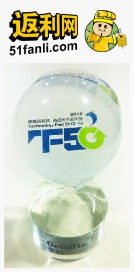 (图:2012德勤高科技高成长中国50强揭晓,返利网凭借CPS服务的高速成长入围该奖)
