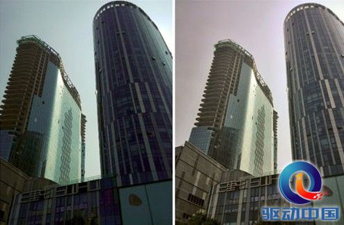 楼体遮光实物拍照对比,左为原点手机拍照,右为华为P6