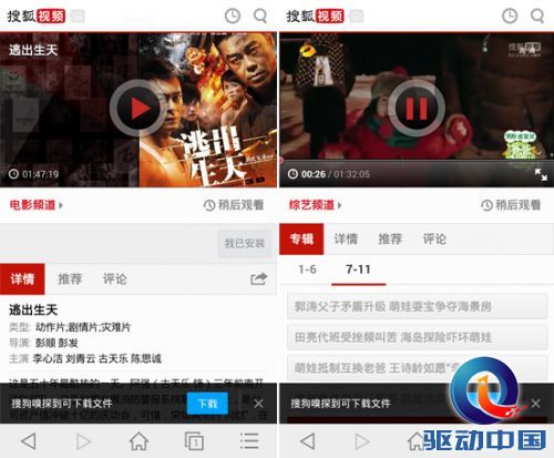 怎样把正在播放的视频下载到手机上一定是很多手机用户的疑问。每当找相关视频的时候,总是大费周章却不得,实在是烦不胜烦。搜狗浏览器自带的视频嗅探功能可以很好的帮助用户解决这个“疑难杂症”。正在观看的视频,或者页面上所拥有的视频,视频嗅探器就能“闻”到,并在屏幕下方给出下载提示。用户只需亲亲一点,便可将将视频收入囊中,既轻松又方便。