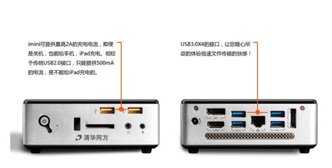 同方imini还支持USB2.0关机充电,即便不打开电脑,也能为手机进行充电。什么?这玩意有啥用?这不省了你一个插头位置嘛,你不必再为好似永远不够用的插头位置而烦恼了。