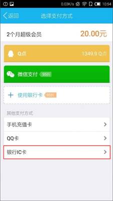 QQ钱包“银行IC卡”一拍支付功能作为手机QQ迈进NFC支付领域的第一步,承担着丰富手机QQ移动支付方式、完善用户支付场景的重任。如目前,QQ会员续费、购买游戏道具、充Q币等交易全部可以选择“银行IC卡”在线支付。