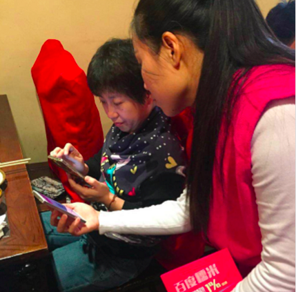 (图:北京某火锅店内,百度糯米地推人员在指导顾客用手机买单)