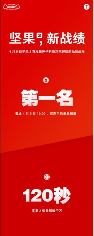 4月9日,普通的再不能普通的一天,但又是惊喜的不能再惊喜的一天!因为4月9日是坚果3首发的日子!!坚果3新品发布,横空出世,首发当日取得了令人不可思议的成绩,下面两组数据你可要睁大眼睛看好!