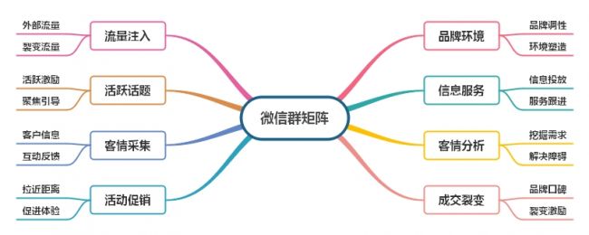 基于微信生态环境的网络社群,将微信群组设定为营销客户的“主战场”,并配合公众平台、营销微信号,向群内提供各种促销与品牌价值提升的信息和服务。在社群运营的过程中,为保证有效达成运营目标,微信社群的运营者需要把握住客户的思维模式,保持群内的活跃度、话题方向、品牌调性,收集客情信息加以分析,再通过各类营销方法,加强客户对品牌的积极印象,促进营销转化契机的产生。