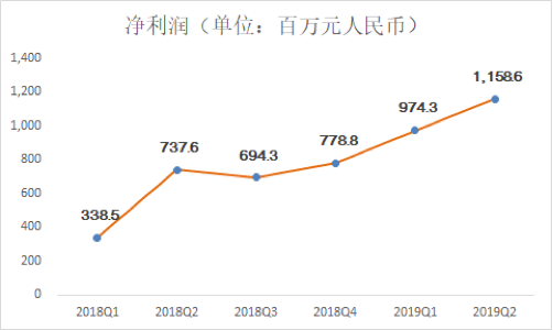 2018年一季度至四季度,趣店调整后净利润分别为3.39亿元、7.38亿元、6.94亿元、7.79亿元;2019年一季度,趣店净利润继续保持增长,达到9.74亿元,;2019年二季度,净利润更是直接迈入10亿元俱乐部,上涨至11.6亿元,再创历史新高。