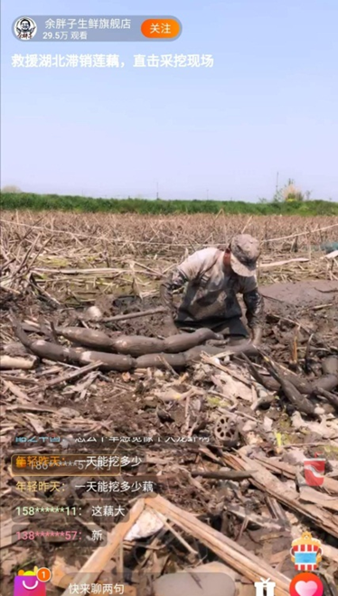 另一位来自湖北荆州的普通农户“余胖子生鲜旗舰店”现场直播挖藕,开始从厚重的泥土里拔出一根根新鲜的莲藕。湖北秭归县的脐橙同样在直播间受到热捧,两场直播,共助力湖北农户售出近10万斤农产品。