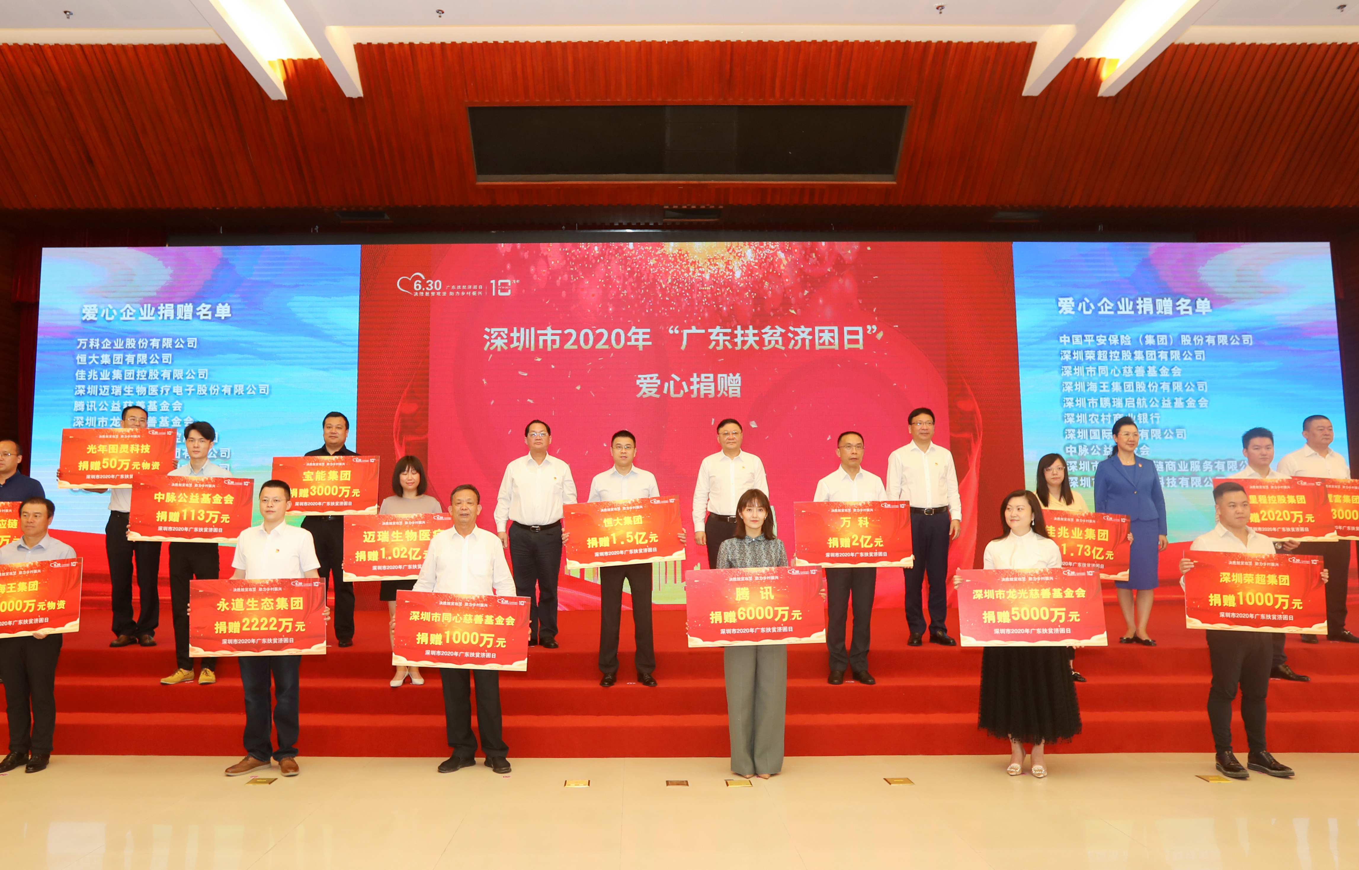 6月30日上午,2020年广东扶贫济困日活动在广州举行,广东省委书记李希,省长马兴瑞,省人大常委会主任李玉妹,省政协主席王荣等领导出席并会见了恒大集团董事局副主席、总裁夏海钧等爱心企业、爱心人士代表。在活动仪式上,恒大集团向广东省扶贫基金会捐赠6亿元,向深圳市慈善会捐赠1.5亿元。