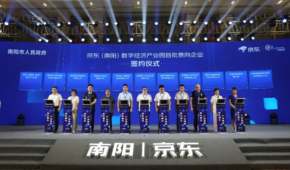 此次大会上,南阳市政府与京东集团正式签署战略合作协议,南阳市相关政府部门、企业同京东集团各业务板块同步推动开展相关领域的务实合作。京东集团将南阳作为市场开拓的重点区域进行布局,双方将在商贸流通、现代物流、数字经济、智慧城市等领域,开展全方位、多层次、宽领域的深度合作。同时,宛城区人民政府和京东科技集团将作为双方合作的“排头兵”,以“将南阳打造成为辐射豫鄂陕三省的区域数字经济枢纽城市”为目标,合作共建“一园三中心”,即:共建京宛合作京东数字经济产业园,共同打造区域产业集聚中心、区域产业技术赋能中心、区域人才培训中心。