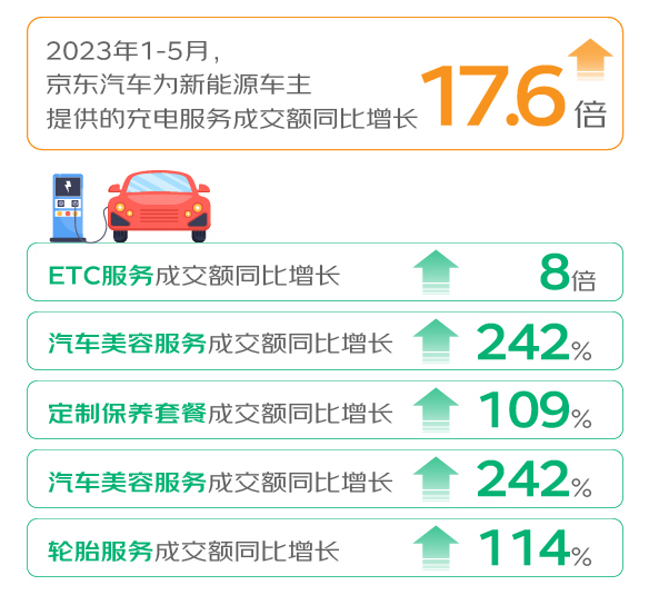 数字技术加持下,新能源汽车越来越“懂”用户。今年1-5月,京东汽车为新能源车主提供的充电服务成交额同比增长高达17.6倍,其中ETC服务成交额同比增长8倍。