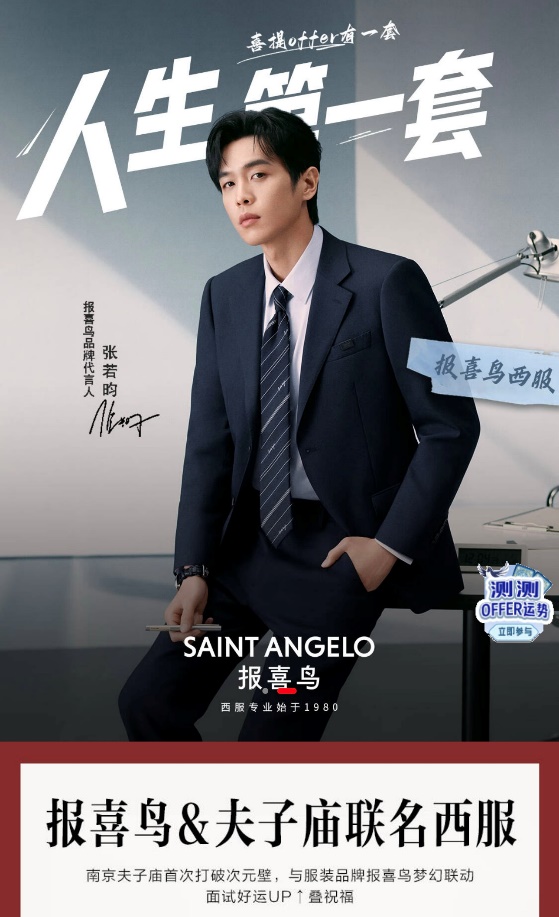 此次双方首次开展跨界合作,将富有美好寓意的传统意象与现代服饰巧妙结合,共同为消费者带来加持好运的品质正装。通过将含有“压胜钱”元素的图案绣在联名西服内兜上,报喜鸟希望能帮助穿着者增强信念感,从而为求职与面试加持好运。