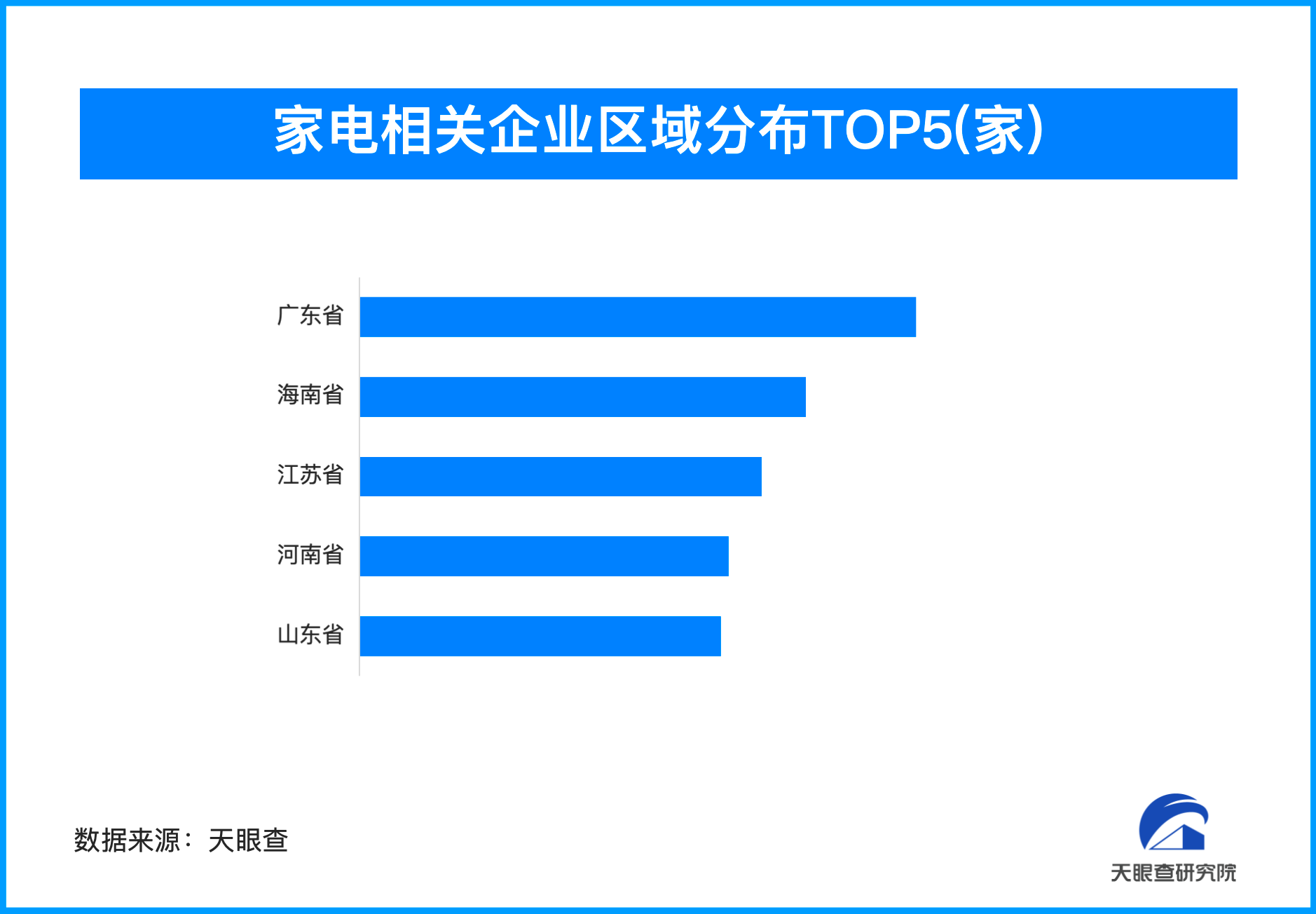 从地域分布看,广东以超316万家家电相关企业位居榜首,海南位居第二,拥有253.8万余家相关企业,江苏、河南、山东紧随其后,企业数量均超过205万家。