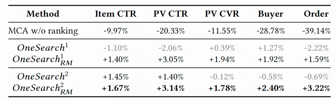 离线实验表明,OneSearch相比现有级联式系统各项指标均有显著提升。在线部署结果更为突出:订单量提升3.22%,买家数增长2.4%。这是在大规模工业场景下,这是生成式模型首次在大规模工业场景中完整替代传统搜索链路,具备重要落地意义。