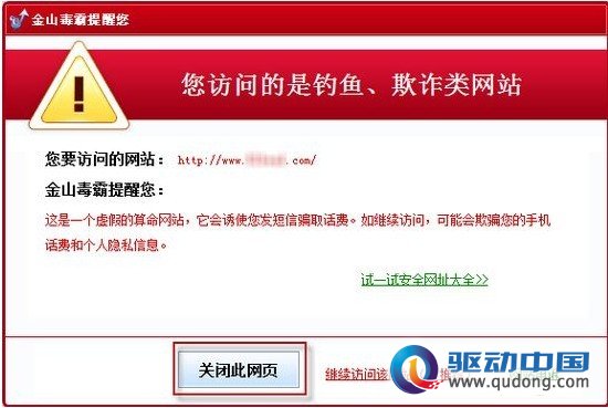 一、金山毒霸网址云安全 全面拦截虚假视频网站