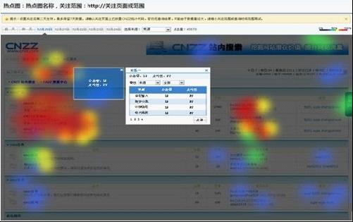CNZZ推出的“热点图”功能,通过不同颜色区分不同区域的点击热度,可以更加直观地展现访客兴趣,高效追踪访客来源,从而多维度分析各种特征的访客点击情况。