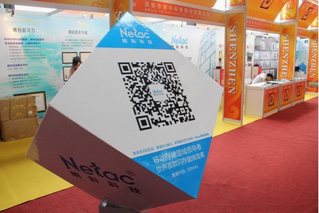 不仅朗科科技的产品展示受到参观者的关注,其展台两边的菱形二维码扫描台也吸引了众多参观者驻足。特别设置的二维码扫描台旨在方便参观者通过手机拍摄扫描二维码的方式,能够在第一时间内更方便、更快捷,更全面的了解朗科科技参展过程的全部信息,