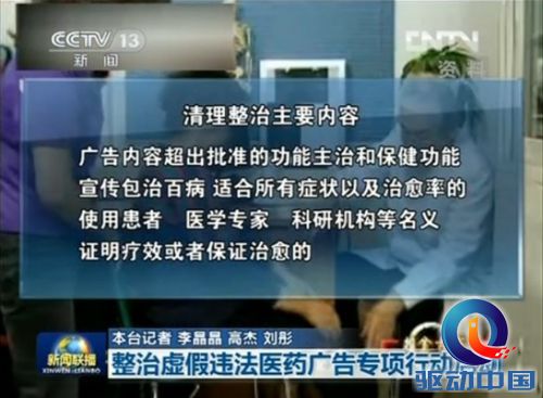 4月22日《新闻联播》报道,国家工商总局等八部门当天起将联合开展为期三个月的整治虚假违法医药广告专项行动。整治范围包括各类报纸期刊、广播电台、电视台以及大型门户类网站、搜索引擎类网站、医疗药品信息服务类网站。据了解,随着我国互联网的快速发展,虚假医药广告已经开始借助互联网、特别是搜索引擎等渠道进行传播,对网民以及患者的身体健康造成极大威胁。