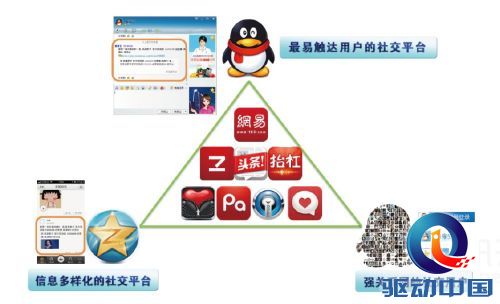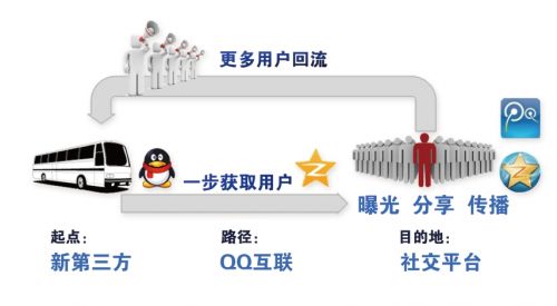其次,作为国内用户群十分广泛的社交网络平台,QQ和QQ空间两大社交化平台月活跃帐户分别高达8亿和6亿,遍布PC web、手机Wap和移动应用三大终端。较之微博的单向粉丝关注行为,QQ和QQ空间双向好友关系会促进应用消息向应用下载和使用转化。并且,其社交渠道的消息触达与展示更合理,整合多种资源进行应用的运营活动,也有效地帮助应用的传播推广。