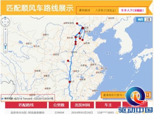 值得一提的是,腾讯地图开放平台专门为顺风车活动提供了通过地图查看最热路线、人多车少(求车主)、车多人少(求顺路)”等实时路线信息。此外,还能将最新信息通过微博、QQ空间等方式分享给朋友。希望借助地图开放平台的力量提升顺风车的信息匹配度,让更多的人能早日回家。