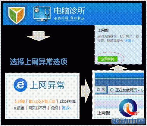 第一步:进入管家电脑诊所,找到“上网慢”选项,点击“立即修复”