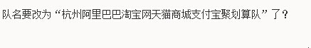 马云接手后,钱不是问题,人不是问题,场地不是问题,最大的问题是球队取名的问题。是叫杭州阿里巴巴?杭州支付宝?杭州余额宝?杭州巴巴?还有长的比如看下面这个阿里巴巴高喊“芝麻开门”,中超的大门便为他打开,马云带领着一众足球大盗开始行走江湖。不知马云的竞争对手京东怎么想。遥想地产界,万达赞助国家队,恒大就买下中超球队。现在京东冠名中超,阿里巴巴也不示弱接手一只球队。有人问,马云懂足球么?你就错了,马云可是一名不折不扣的球迷,球技还很不错呢。