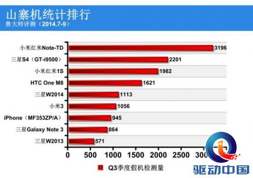 我们只列举了Q3季度前5位的假机,接下来还有如小米3、iPhone(MF353ZP/A)、、三星Note 3、三星W2013等各种奇葩假机。一部分还是有名有姓,内部刷机的时候还用上了正品的名字,一部分则是完全无法从软件层面去识别身份。数据里有很多各式各样的假机搭配却无法判断外观的模仿对象,所以我们的数据并不能准确的涵盖所有的假货对象,只能告诉大家模仿程度比较高的部分机型。购机的时候,如果你用鲁大师检测发现上面手机品牌名称写着:android,那么100%就是一台假机/山寨机,千万不要犹豫立马拒收退货。