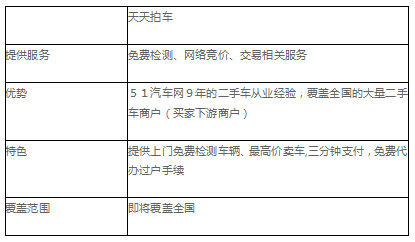 天天拍车是由51汽车网全新打造的CtoB二手车网络竞拍平台,今年成立以来发展迅速,主要提供集二手车预约、免费检测、网络竞价、快速交割、即时付款等一站式二手车帮卖服务。