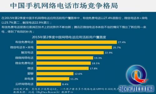 日前比达咨询(BigData)发布《2015年第2季度中国网络电话研究报告》,最新监测数据揭示目前国内VoIP网络电话通信的发展趋向,受到市场关注。《报告》所呈现的最大亮点,即有信免费电话分别在活跃用户覆盖度(27.4%)、手机网络电话下载量(1.23亿)、移动用户品牌关注度(3549人次)、手机用户常用率(25.2%)和旅游场景使用分布(31.8%)等五项数据占据市场份额第一,领跑市场。