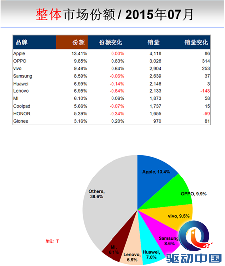 OPPO7月份市场占有率仅次于苹果位居第二