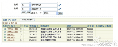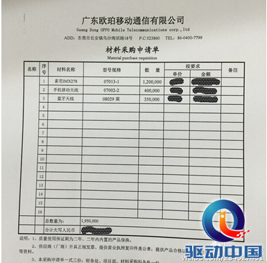微博曝光出的OPPO内部采购订单