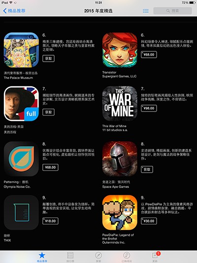 在Appstore公布的年度精选中,威锋网金狮奖提名作品与之重合度也非常之高,《Airbnb》《Enlight》《泼辣修图》等榜上有名,其中《烧杯》更是获得了iPhone部门的年度创新App。由此也可见,精品App的实用性与艺术性可以结合的很棒。