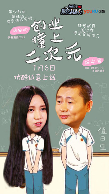 《创业分子》第二季第一集,纪中展对话快看漫画创始人、微博著名漫画师@伟大的安妮,陈安妮。下面就来看看“老纪”如何问诊陈安妮。