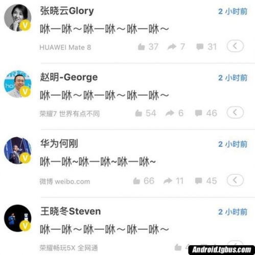 图:华为&荣耀高管齐发微博“咻一咻”