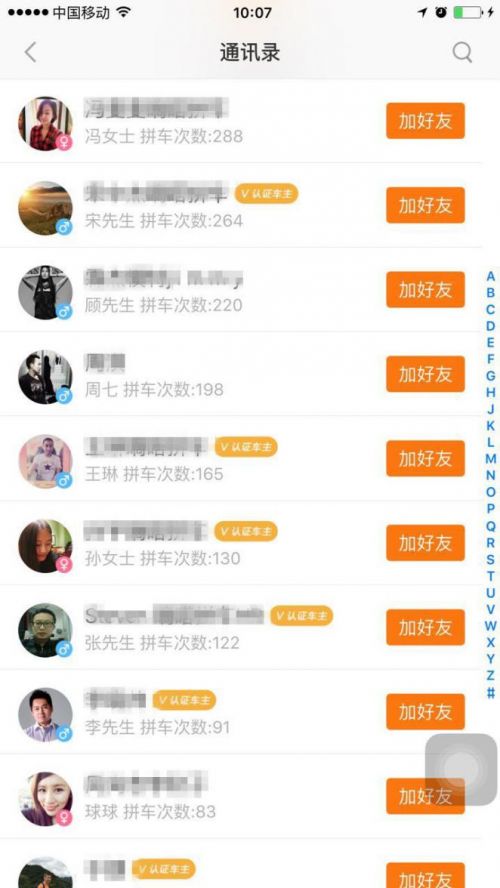 第三,嘀嗒好友功能还可以匹配你的通讯录,在联系人里有哪些人和你一样正在使用嘀嗒拼车一目了然,动动手指就可以加TA为好友。