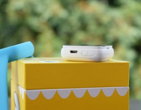 360巴迪龙儿童手表SE的接口都是分别在手表的两侧,右侧为外放喇叭和返回按键。外放喇叭的设计挺深的,不过实测中效果不错,语音清晰就算在比较嘈杂的环境中都可以应付自如。