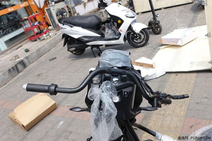 这是脱离了木箱的雅迪Z3,即便支起时依旧有木条保护前轮轴以及减震。能够看出刚刚取出的Z3车体几乎被包裹了一圈,这么到位的工作是处女座所为吗?
