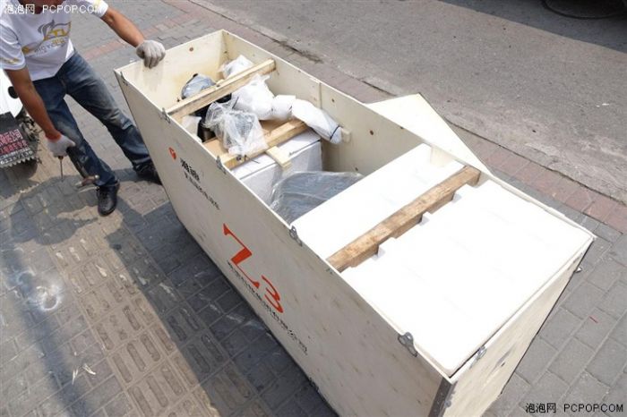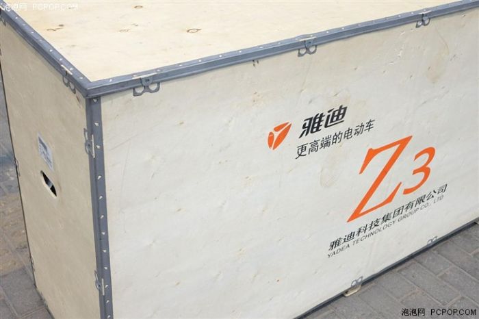以前我所见过的“木箱”多是木条加铁钉的拼装物,而雅迪Z3外包装可是真金白银的木箱子啊,所有卡扣采用连体的金属条固定。现场我最大疑问便是如此“豪华”的木箱是否可以重复利用,答案是否定的,看来Z3的包装有望成为我见过最豪华的“快递包装箱”。