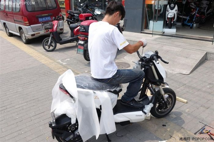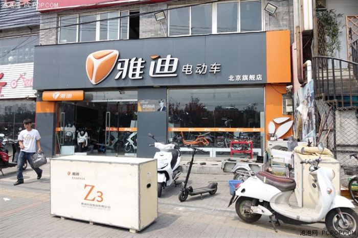 出厂状态下,雅迪Z3需要手工安装前轮才行,这个工作显然不是快递员工所能进行的,它也体现了雅迪覆盖全国各地实体店布局的意义。当然了实体店的意义还在于电动车维修保养等售后服务,例如现场我们就看到了一位刚刚购车不久的雅迪用户在店里充电,如果雅迪的微信或是手机客户端能够就近搜索店面地址为用户提供临时充电就太方便粗心的骑友应急了,即便真能如此服务咱也要对行程和电量进行准确预估再出门。