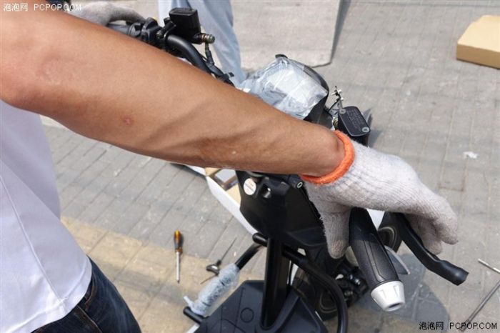 除了车轮之外,雅迪店内的员工还将车把、刹车、反光镜以及风挡一一组装,有个细节必须要单独介绍,在安装车把和反光镜时,初期固定后安装员特意坐在Z3上以骑行的姿势调节车把和反光镜角度,他还检测了前后刹车的灵敏度,如此安装已经非常细心和尽职,也是对新入电动车的雅迪用户的安全保障。