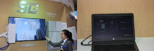 在“2016年北京国际信息通信展览会”现场中国电信展台,中国电信展示了与诺基亚公司合作的5G原型机,这套5G原型机系统相当于一个5G模拟设备,通过宽载波(4个100M),高阶MIMO(8*8)和高阶调制(64QAM)等新技术,实现了上行下行各5Gbps的高速率。