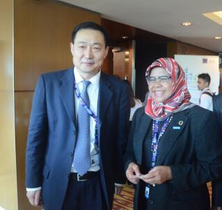(图:联通智网科技有限公司董事长兼总经理辛克铎与联合国副秘书长MaimunahMohd Sharif女士合影)