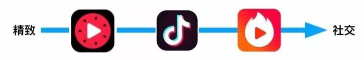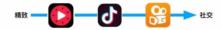 从内容布局来看,头条系的三个App存在清晰的内容差异。如果将精致和社交看作是内容的两端,你会发现头条系的三个App刚好是依次排列。西瓜视频是纯内容,弱社交属性,抖音定位精品短视频分享社区,而火山则完全是大众社交化的代表。