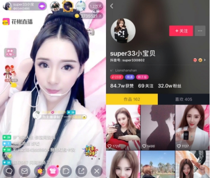 在花椒推出的主播选拔赛事——巅峰之战中,于倾城之争赛道晋级赛中获得冠军的“super33小宝贝”(花椒ID:65443486),就曾是一名抖音红人,拥有32万粉丝。曾获得《男人装》杂志2017年最受欢迎人气红人奖,参演过《新娘大作战》、《青春风暴》等多部影视剧的她,凭借超高颜值及性感火辣的身材,自参赛以来累计收到了近640万的花椒币打赏。