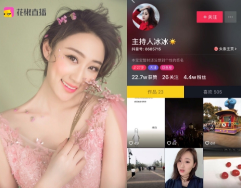 在巅峰之战口舌之争晋级赛中排名第二的“主持人冰冰”(花椒ID:127730985),则是国家一级播音员,曾主持过辽宁电视台经济频道春晚、国际流行趋势发布会等多次大型活动。颜值和实力兼具的她在比赛期间累计收到的打赏达153万花椒币。少为人知的是,在入驻花椒之前,她已是拥有4.4万粉丝的抖音红人了。