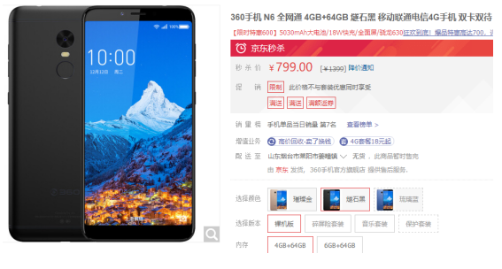 从目前看,360手机的这一目正在达到,不过离预期还远,从京东618当日单品销量排名来看,360手机N6之,甚至包括在6月12日曾一度杀入当日单品销量的前五的N6 Pro、N6 Lite之所以会输给小米8 SE、荣耀畅玩7A、7X,其实正是这种品牌影响力的直观反应。