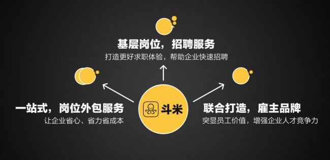斗米的服务模式是线上线下打通的一站式闭环,面向B端提供在线招聘、RPO招聘、岗位外包、在线众包等多类型服务,利用互联网技术和大数据,提升灵工招聘效率与用工管理效率;同时,斗米又用海量匹配度高的工作岗位,吸引大量C端用户。为增强用户粘性,通过不断发现新痛点,然后创造新的连接和价值,比如金融、保险、住宿、培训、社交以及其他生活服务等,完成从求职到生活的延伸。